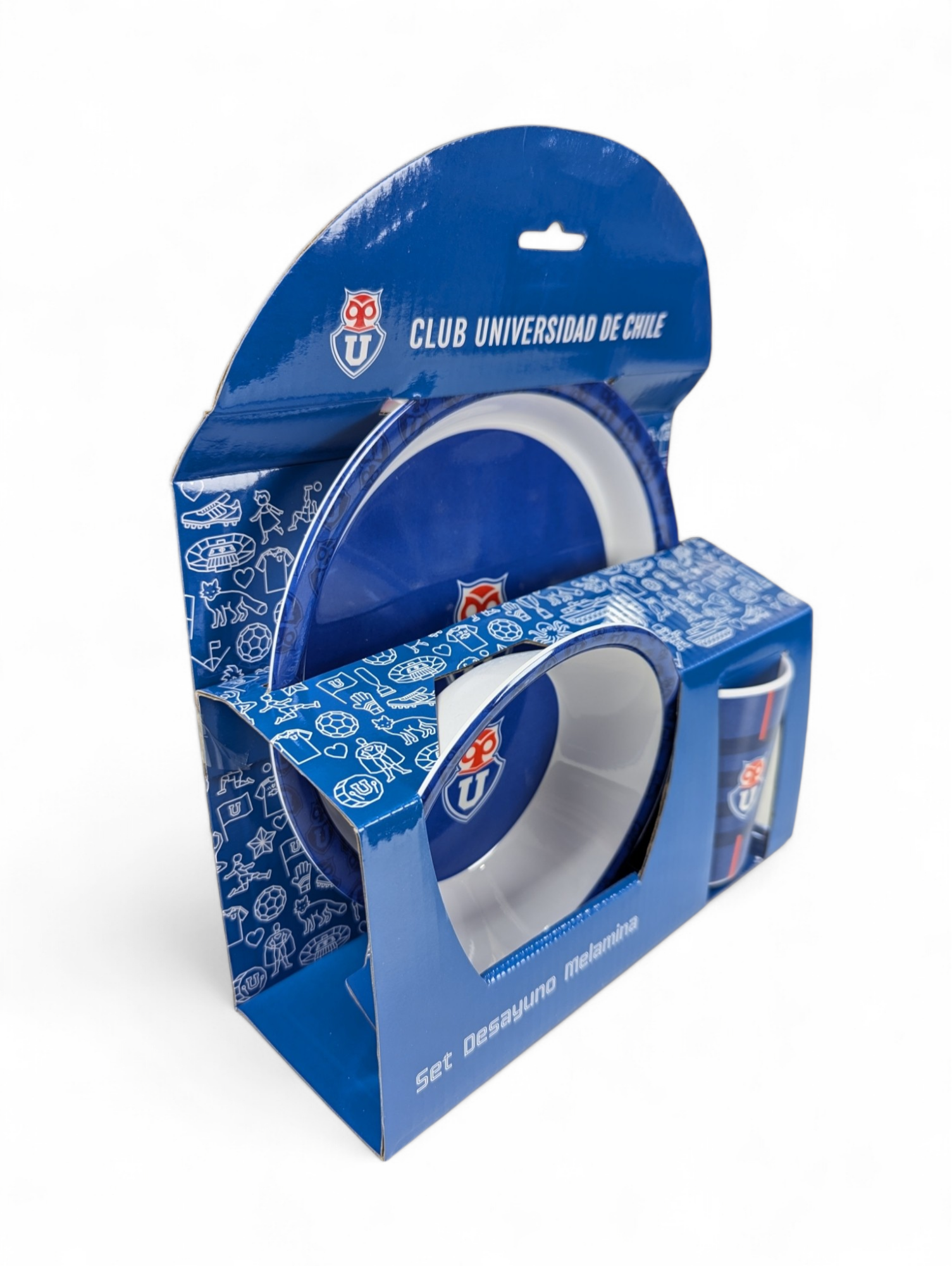 SET DE DESAYUNO U DE CHILE FANATIKOS - VAJILLA DE MELAMINA CON ESCUDO OFICIAL